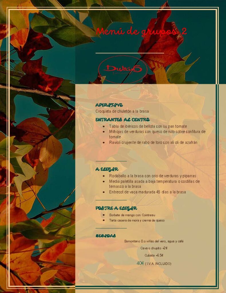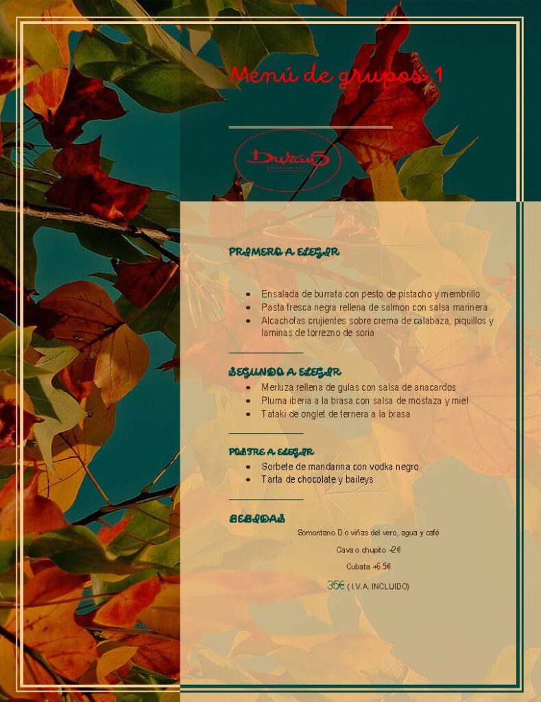Menús de grupo y eventos